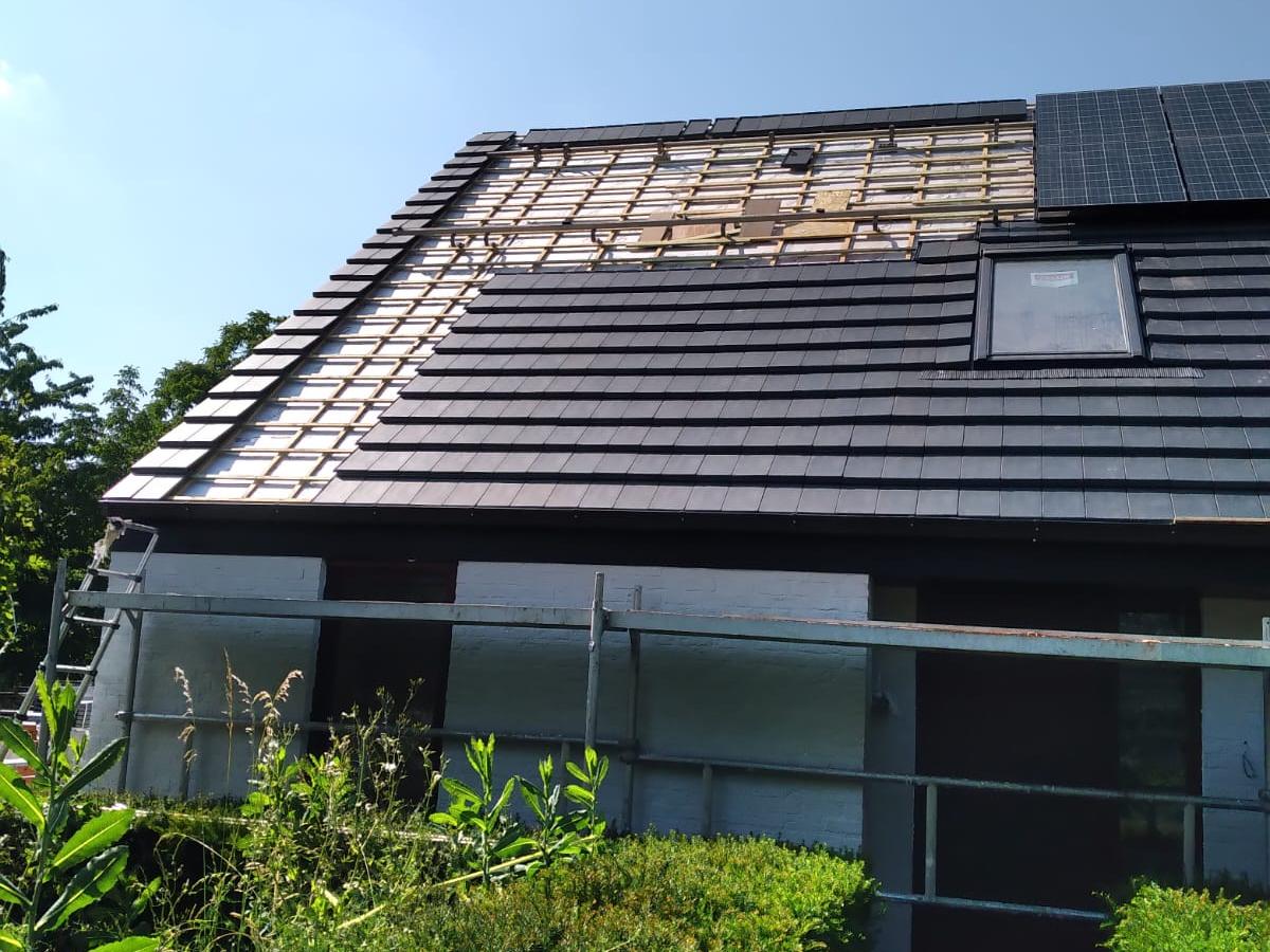 The seamless combination of a new roof with top-of-the-line roof tiles and solar panels exemplifies our commitment to innovation and environmental responsibility. Not only does this project enhance the functionality and efficiency of the building, but it also contributes to a more sustainable future for generations to come.